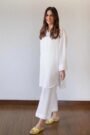 Sleeves: Relaxed long sleeves with slight taper